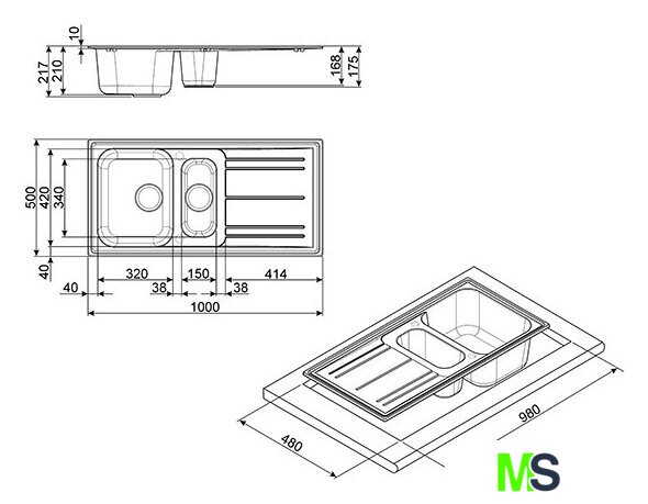 врезная на столешницу, искусственный камень, размеры: 100x50 см, в шкаф 60 см