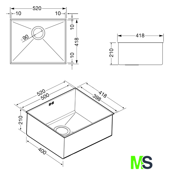 Ширина мойки | 52 см |