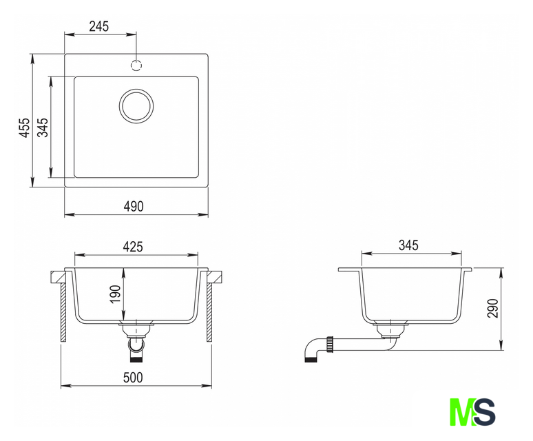 | Диаметр сливного отверстия | 3.5" |