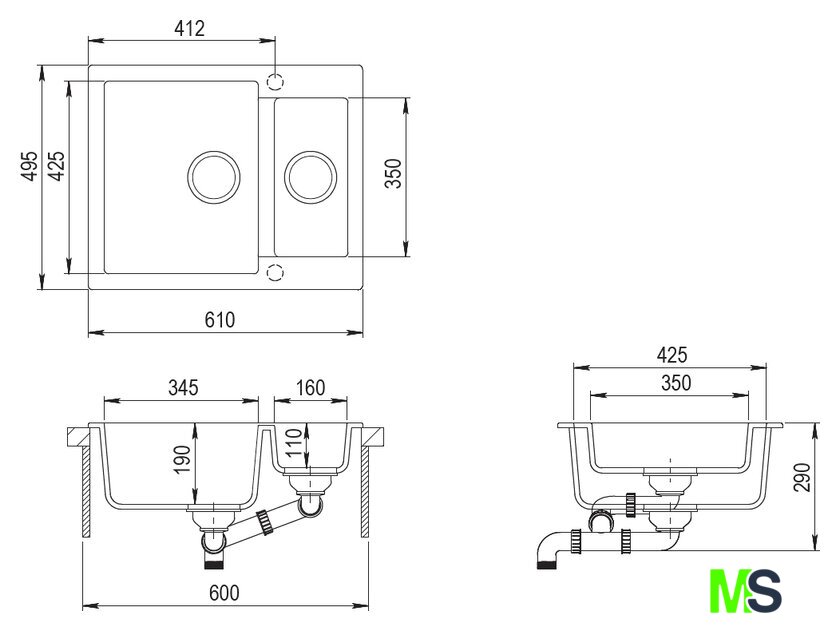 | Ширина мойки | 61 см |