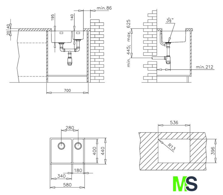 | Диаметр сливного отверстия | 3.5" |