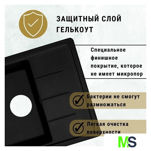 врезная на столешницу, искусственный камень, размеры: 61.5x50 см, в шкаф 40 см