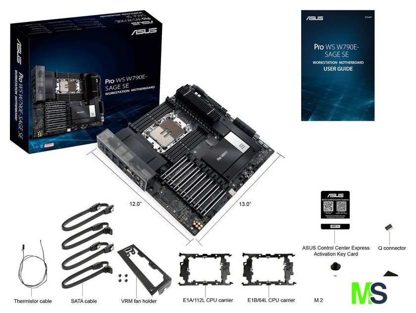 | Комплектация | Cables4 x SATA 6Gb/s cables1 x Thermistor cable packMiscellaneous1 x VRM Fan holder1 x Q-connector1 x M.2 Rubber Package(s)1 x M.2 backplate Rubber Package(s)1 x Screw package for M.2 Key E1 x CPU guard for LGA 4677 E1A1 x CPU guard for LGA 4677 E1BDocumentation1 x ACC Express Activation Key Card1 x User guide |