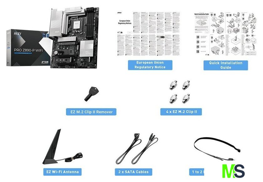 | Комплектация | - EZ Wi-Fi антенна - 2 кабеля SATA- 1EZ - 2EZ кабель - ключ-экстрактор EZ M.2 Clip II - 4 винта со стойкой EZ M.2 Clip II- документация |