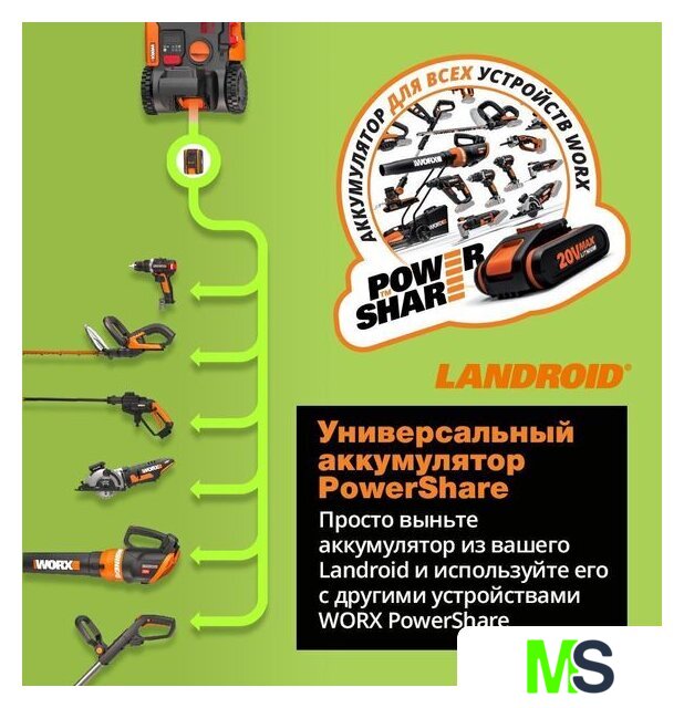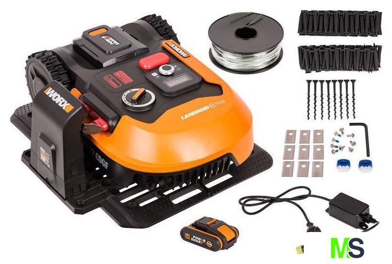| Комплектация | В комплект поставки входят Соединители для ремонта проводов (2), Запасные лезвия крепятся винтами (9), Шестигранный ключ (1), Зарядная станция (1), Винты для зарядной станции (7), крючки (210), Блок питания (1), 150-метровый ограничительный провод (1), Батарея PowerShare 20 В, 2 Ач (1), Ограничительные дальномеры (2), Линейка Л. Бертельсена (1) |