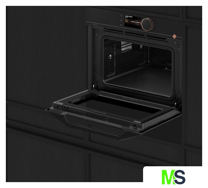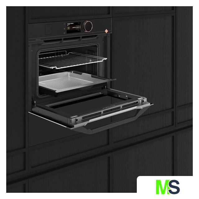 электрический с конвекцией, приготовление на пару, объем 40 л, 15 режимов, очистка пиролитическая, 4 стекла в дверце, направляющие проволочные