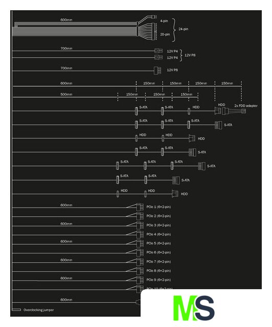 | Модульное подключение кабелей питания | есть |
