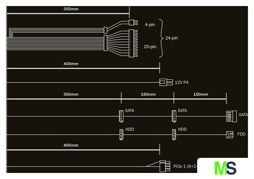 | Модульное подключение кабелей питания | нет |