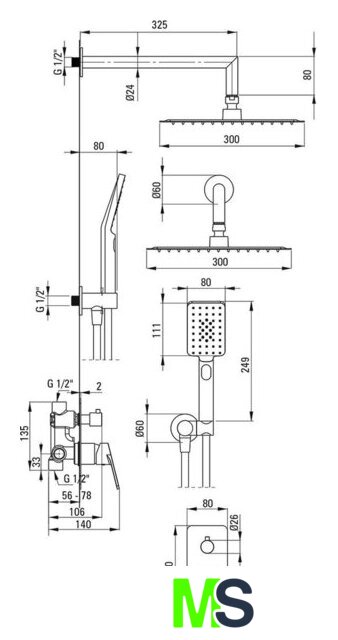 | Диаметр (ширина) верхнего душа | 300 мм |