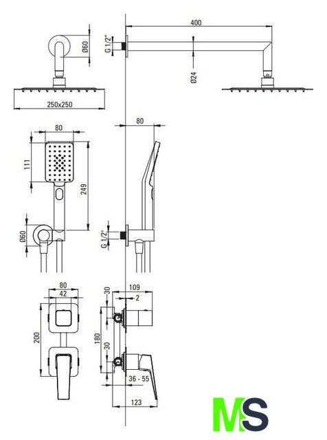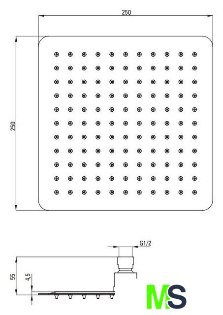 | Диаметр (ширина) верхнего душа | 250 мм |