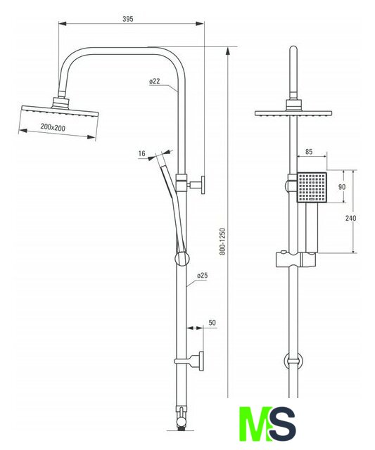 | Диаметр (ширина) верхнего душа | 200 мм |