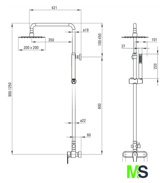 | Диаметр (ширина) верхнего душа | 200 мм |