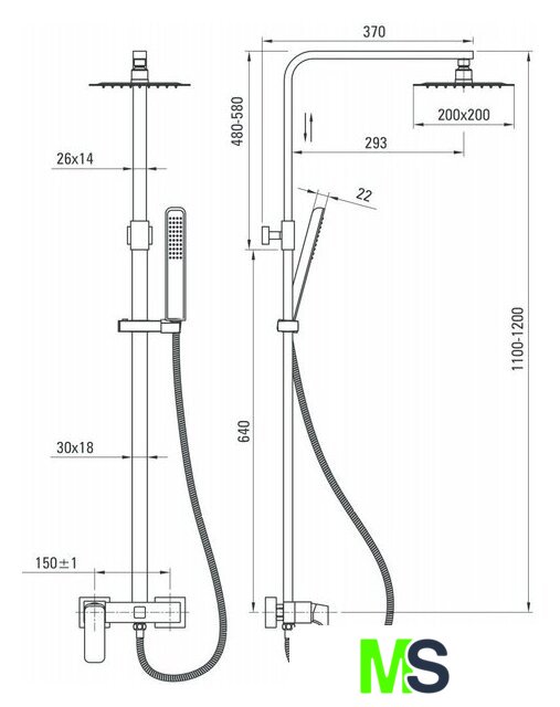 | Диаметр (ширина) верхнего душа | 200 мм |