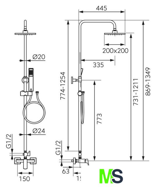 | Комплектация | верхний душ, штанга, ручной душ (лейка), держатель лейки, шланг, смеситель |