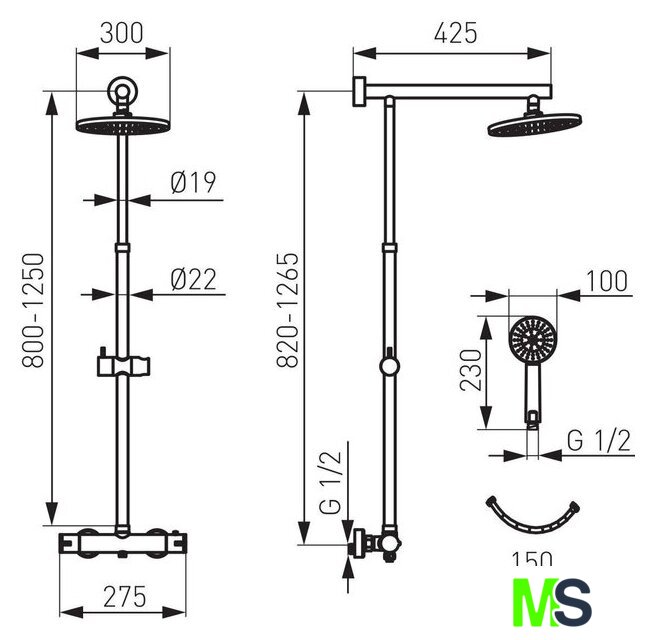 | Комплектация | верхний душ, штанга, ручной душ (лейка), держатель лейки, шланг, смеситель |