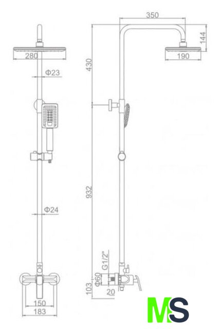 | Диаметр (ширина) верхнего душа | 280 мм |