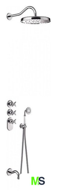 | Комплектация | верхний душ, ручной душ (лейка), держатель лейки, шланг, смеситель, излив для ванны |