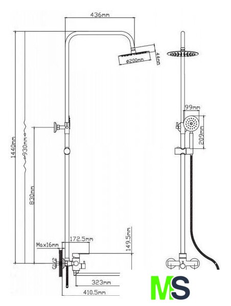 | Диаметр (ширина) верхнего душа | 200 мм |