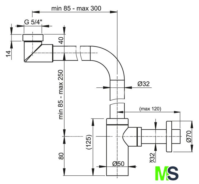 | Диаметр водосточной трубы | 32 мм |