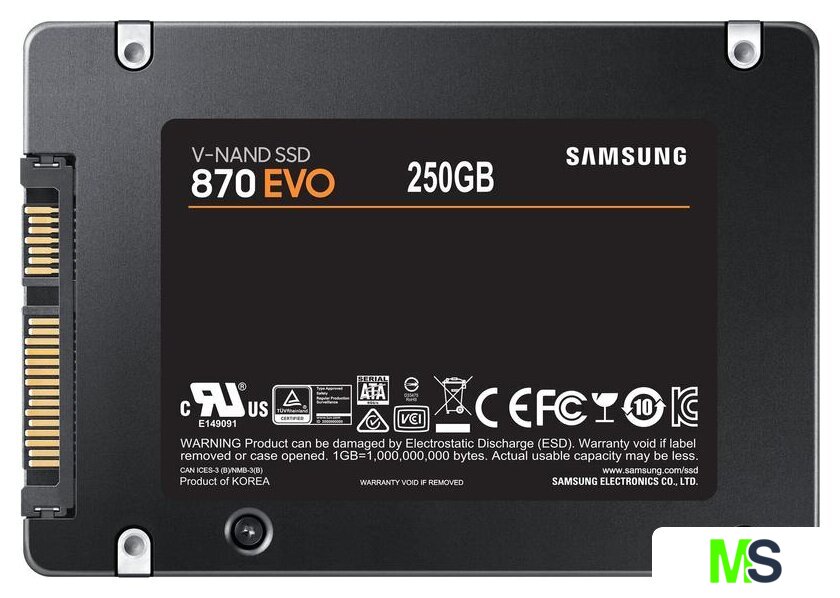 250 ГБ, 2.5", SATA 3.0, контроллер Samsung MKX, микросхемы 3D TLC NAND