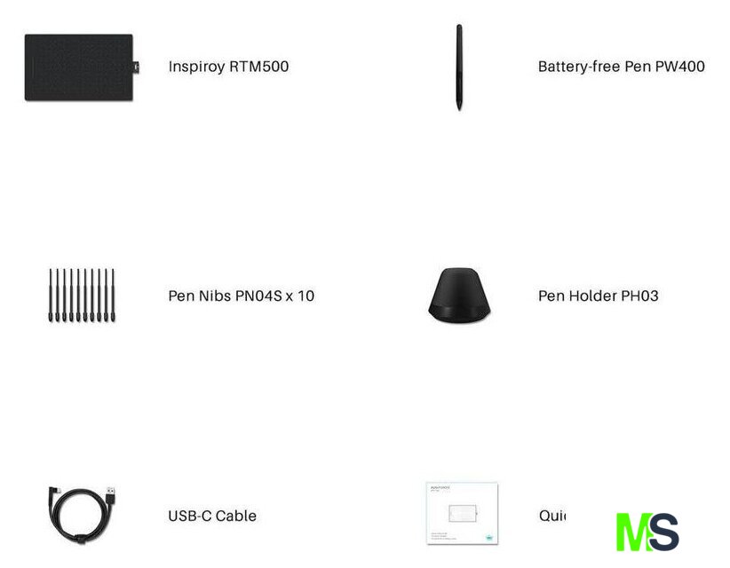 | Комплект поставки | Графический планшет - 1 штРучка-дигитайзер PW400 - 1 штНаконечники для ручки - 10 штПодставка под перо с встроенным устройством для замены наконечников - 1 штКабель (USB-USB Type-C) - 1 штРуководство по эксплуатации - 1 штГарантийный талон - 1 штИнформационный вкладыш - 1 шт |