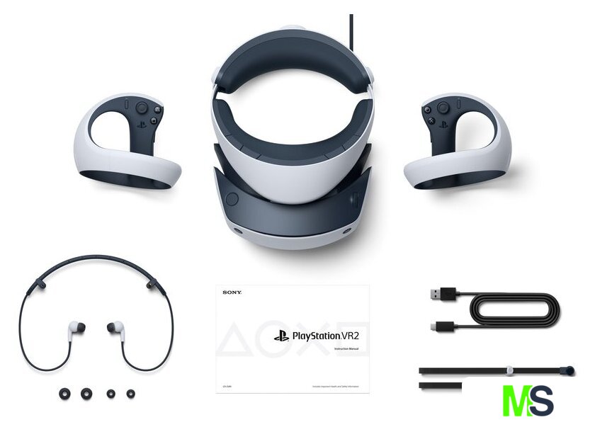 | Комплектация | - Гарнитура виртуальной реальности- Контроллер PlayStation VR2 Sense (L) / (R) с ремешками- Кабель USB (для сопряжения и зарядки контроллера)- Стереонаушники- Три пары силиконовых амбушюров- Брошюры и печатные материалы |