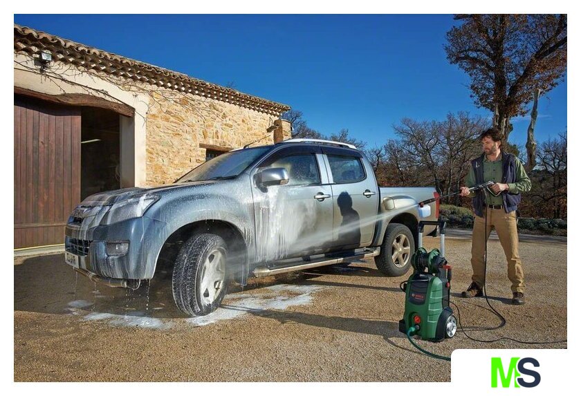 | Комплектация | - Пистолет высокого давления с металлическим стволом;- Трубка;- Шланг высокого давления 8 м;- Регулируемая распылительная насадка;- Поворотная насадка;- Насадка для нанесения моющего средства под высоким давлением, 550 мл;- Водяной фильтр. |