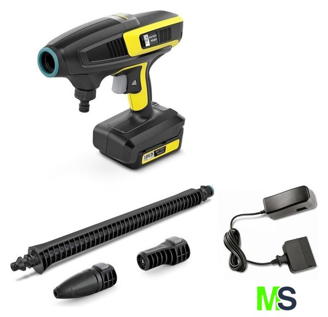 | Комплектация | - Аккумулятор, Аккумулятор Battery Power 18 В / 2,5 Ач (1 шт.);- Зарядное устройство, Станд. зарядное устройство Battery Power 18 В (1 шт.);- Встроенный фильтр для воды;- Адаптер для садового шланга A3/4";- Веерное сопло QC Handheld;- Грязевая фреза QC Handheld;- 1-позиционная струйная трубка. |